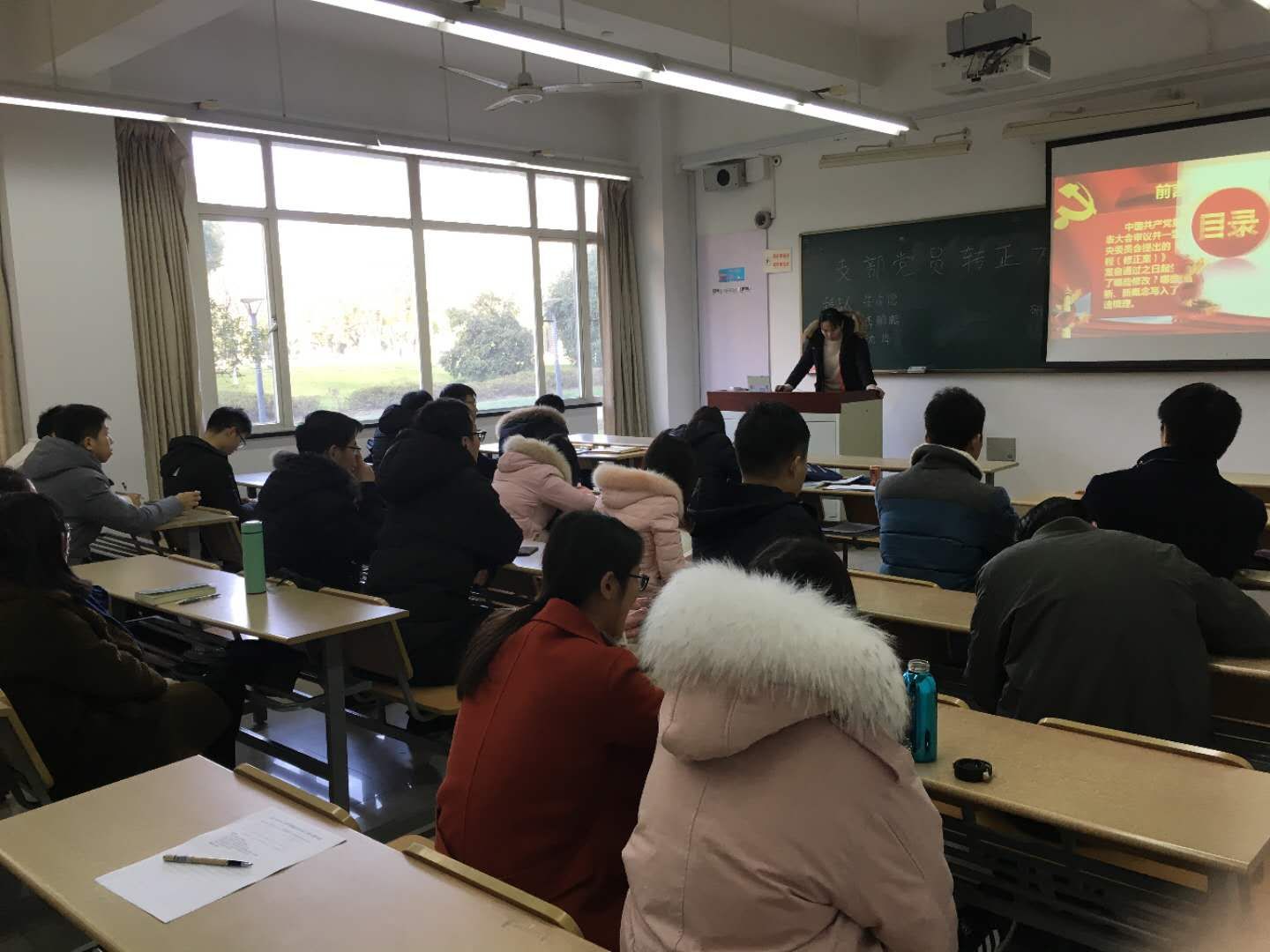 为学习贯彻落实党的十九大会议精神,按照“两学一做”学习教育常态化、制度化要求,suncitygroup太阳新城研究生第二党支部于1月9日在教学楼D102,组织全体支部党员开展十九大《中国共产党章程(修正案)》专题学习会。