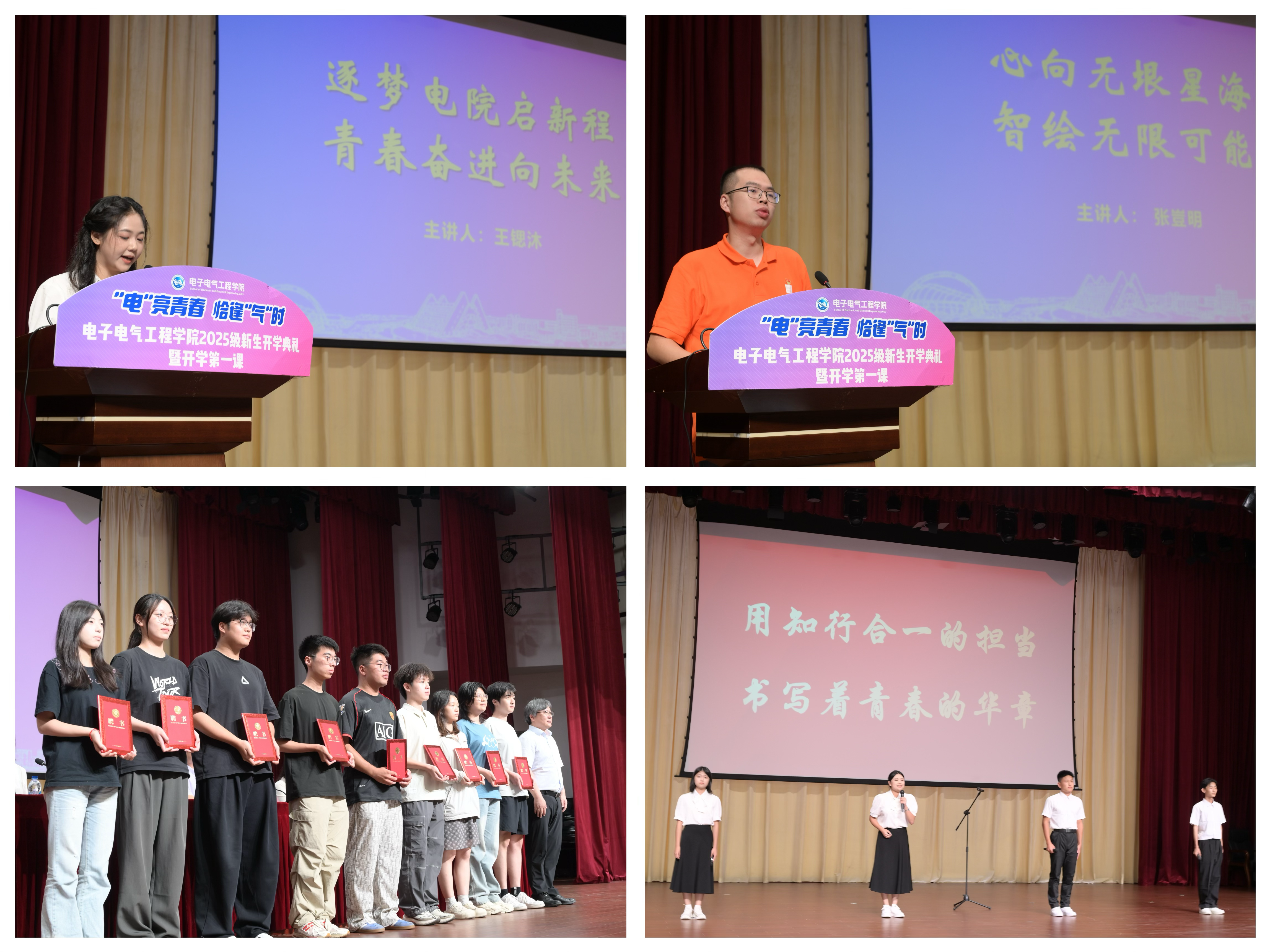 员工张豈明分享了参赛经验与成长感悟,鼓励新生脚踏实地开展实践。新生代表王锶沐表达了电气青年肩负时代使命、共创辉煌的决心。典礼上,学院为辛勤付出的导生和志愿者颁发了聘任证书,传递了电院人的温暖与奉献。学院红“芯”青年讲师团,以“芯火相传:AI时代的青年密码”为主题,宣讲了新时代青年应有的理想与奋斗精神。