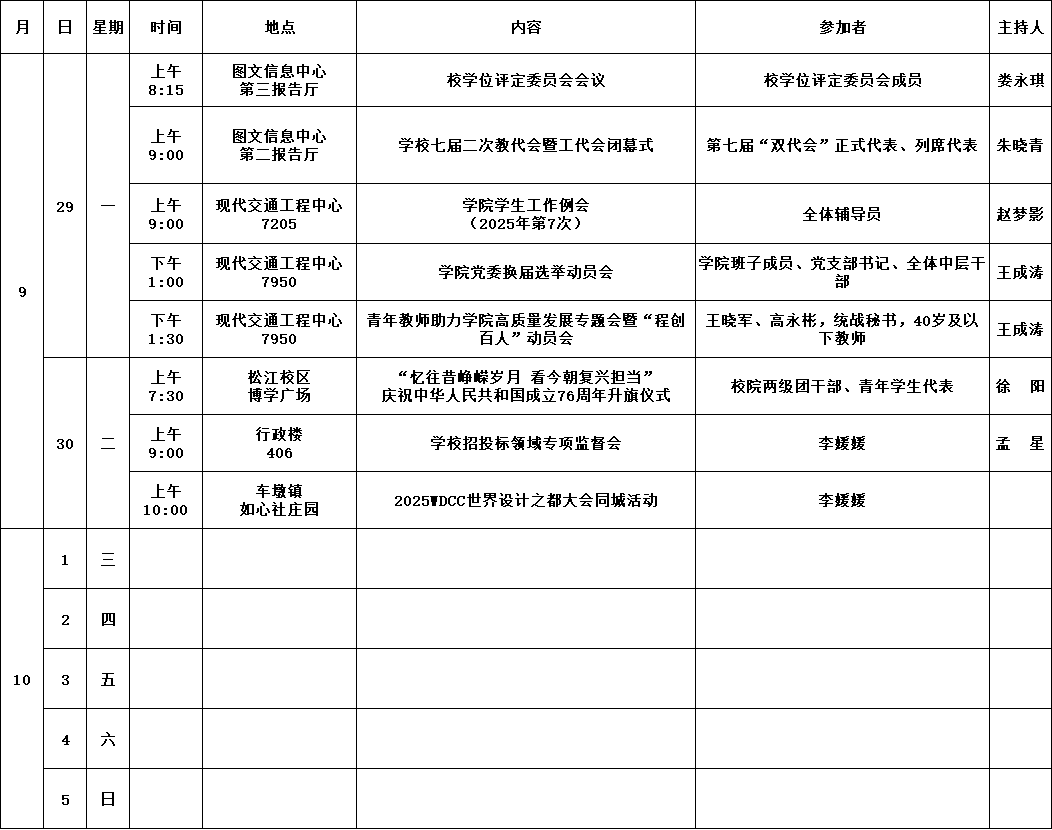 公司第4周活动安排(2025年9月29日-10月5日)