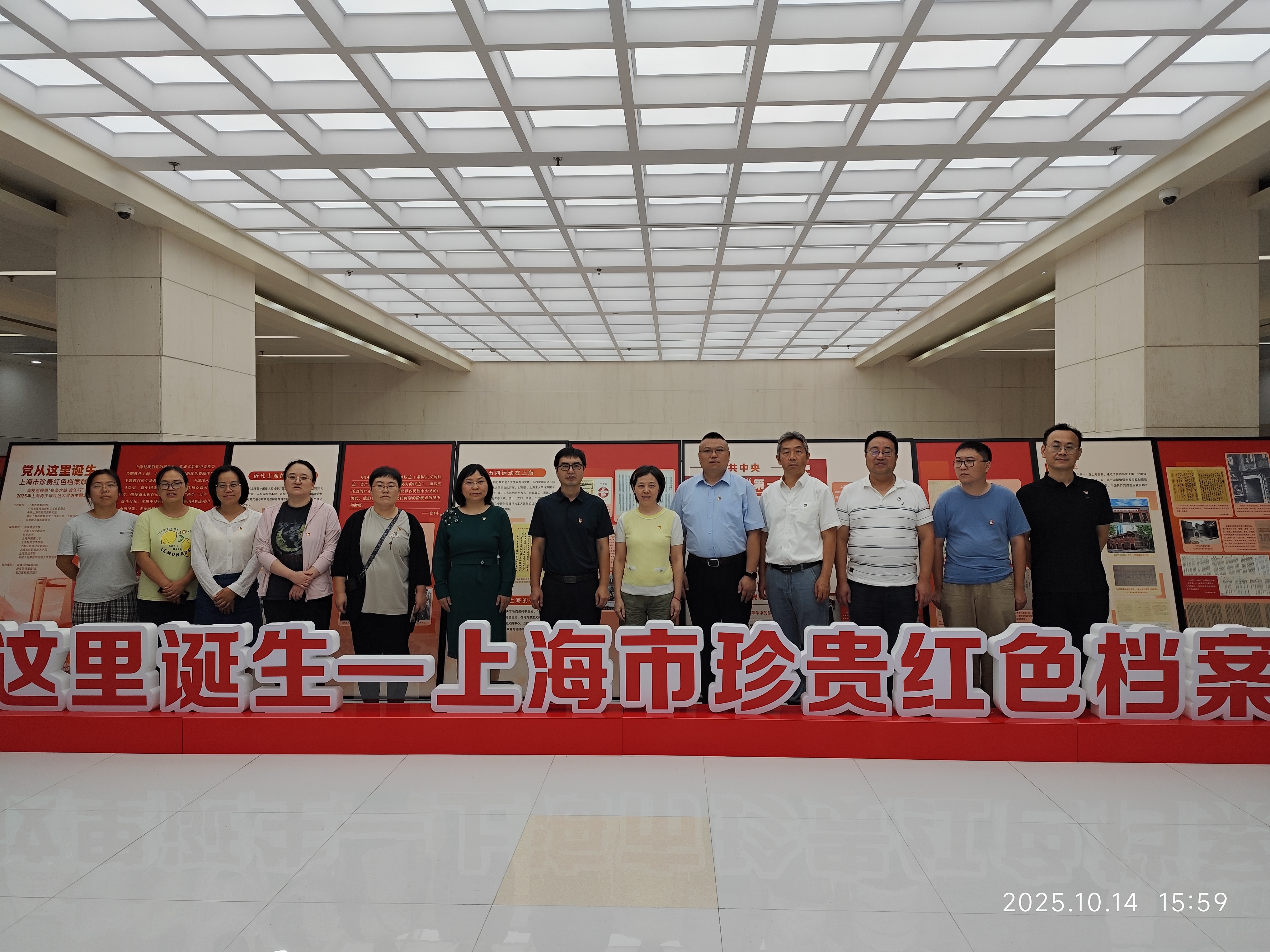 10月14日下午,suncitygroup太阳新城党政办实验中心党支部全体党员赴第一图文信息中心一楼大厅参观“党从这里诞生——上海市珍贵红色珍档联展”,在泛黄档案中重温红色记忆,于历史细节里感悟初心使命。