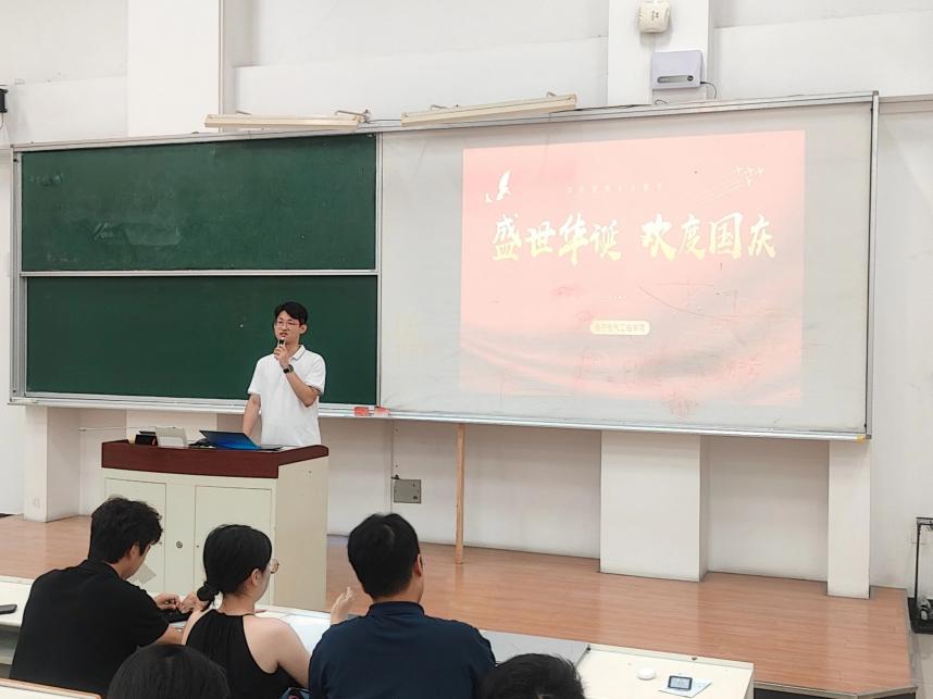 班会内容丰富多元。通过播放讲述英雄故事、开展知识竞赛等方式,师生共同回顾了新中国成立76年来的辉煌成就和宝贵经验。辅导员原振峰着重讲解了国庆节的历史意义,引导员工深刻理解国家发展的艰辛历程与伟大飞跃。在安全教育环节,原老师从出行安全、防范诈骗、网络安全等多方面进行提醒,确保员工度过一个祥和愉快的假期。