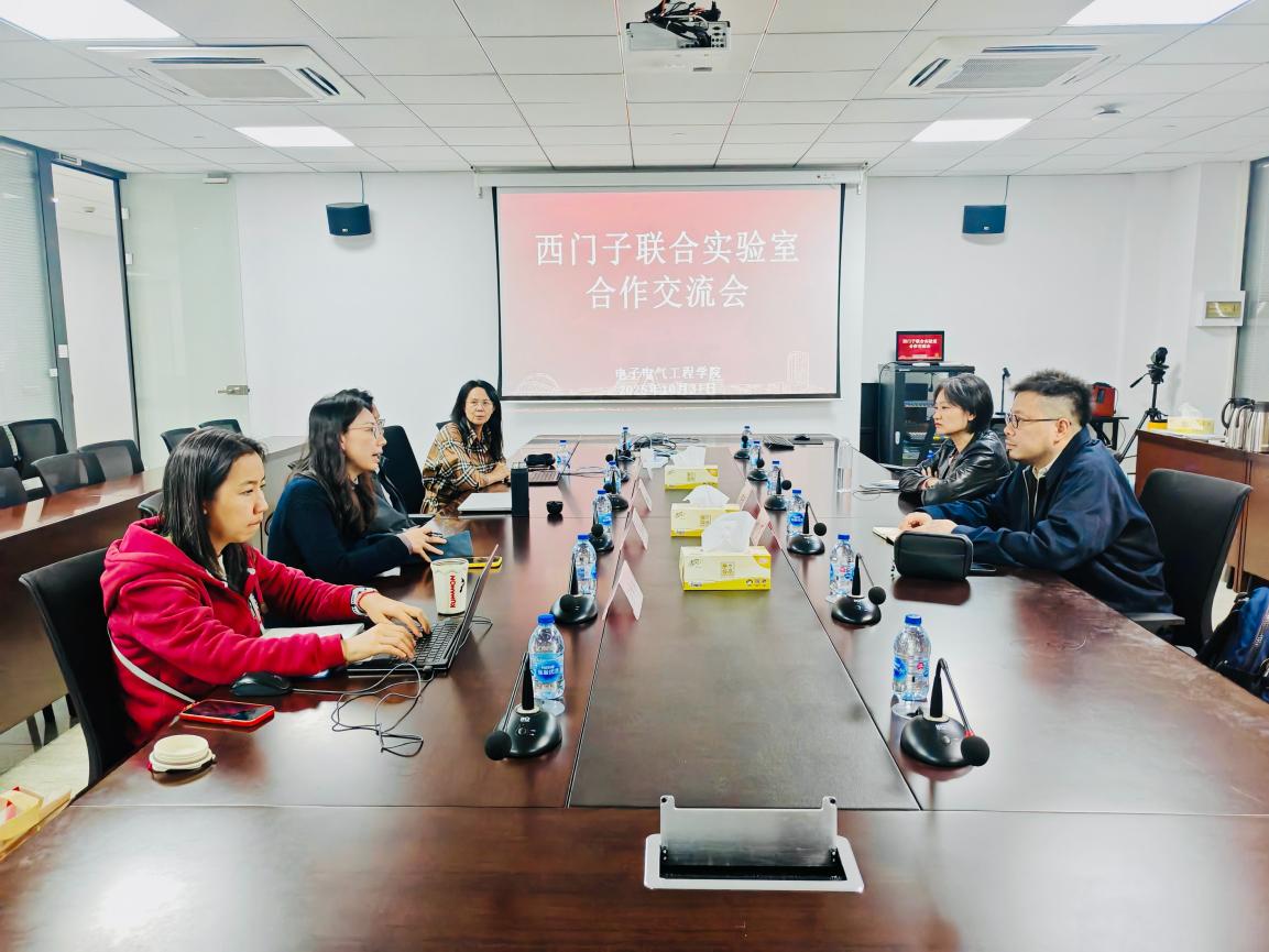 2025年10月31日下午,西门子(中国)有限公司教育合作华东区市场发展经理刘强、上海电气集团自动化设计研究所市场总监戎雅芸一行来访suncitygroup太阳新城,开展产教合作洽谈交流。电气suncitygroup太阳新城党委副书记、经理李媛媛,副经理高永彬、电气工程系主任闫书佳、研究生电基未来党支部书记张菁参会。