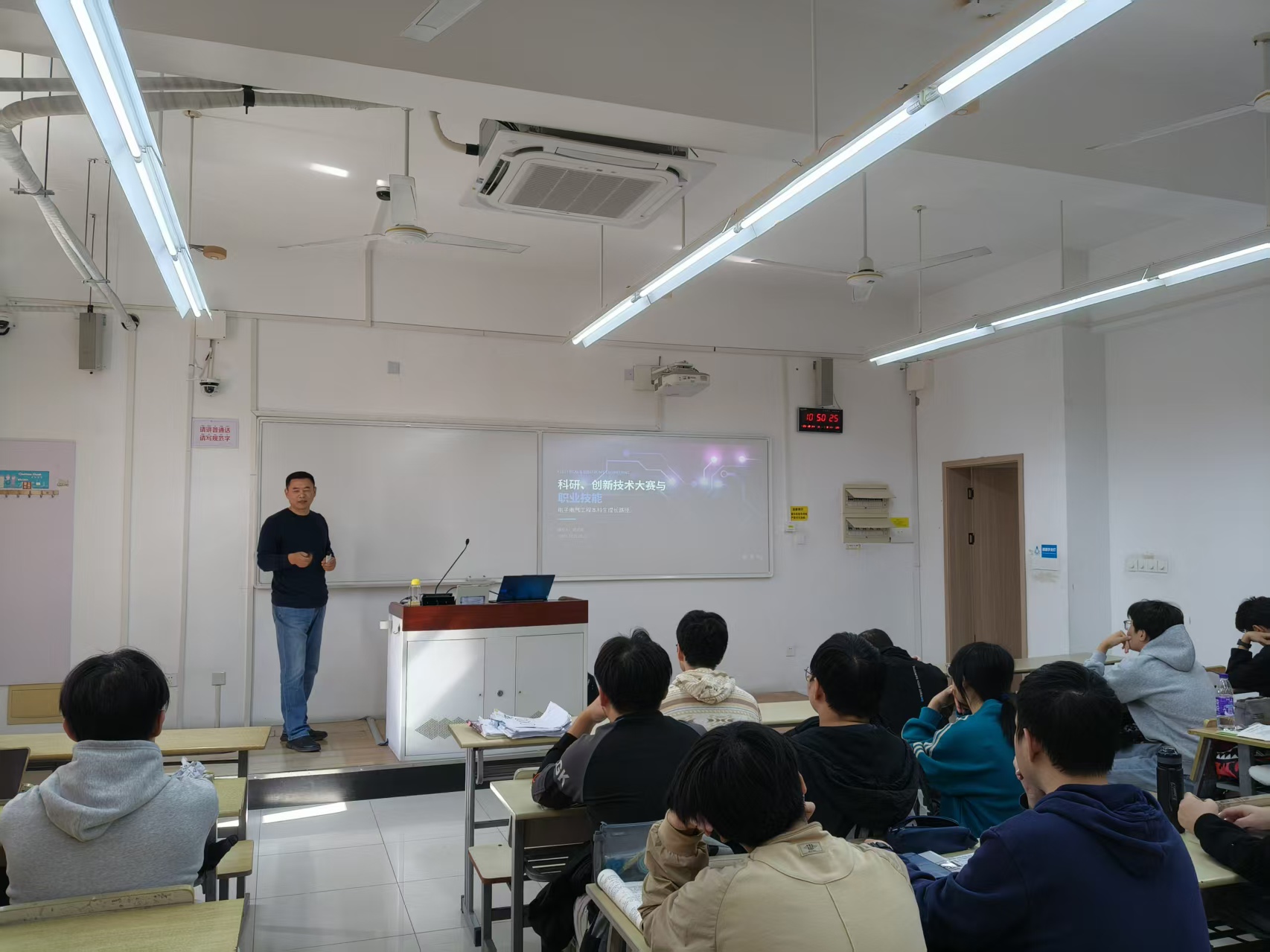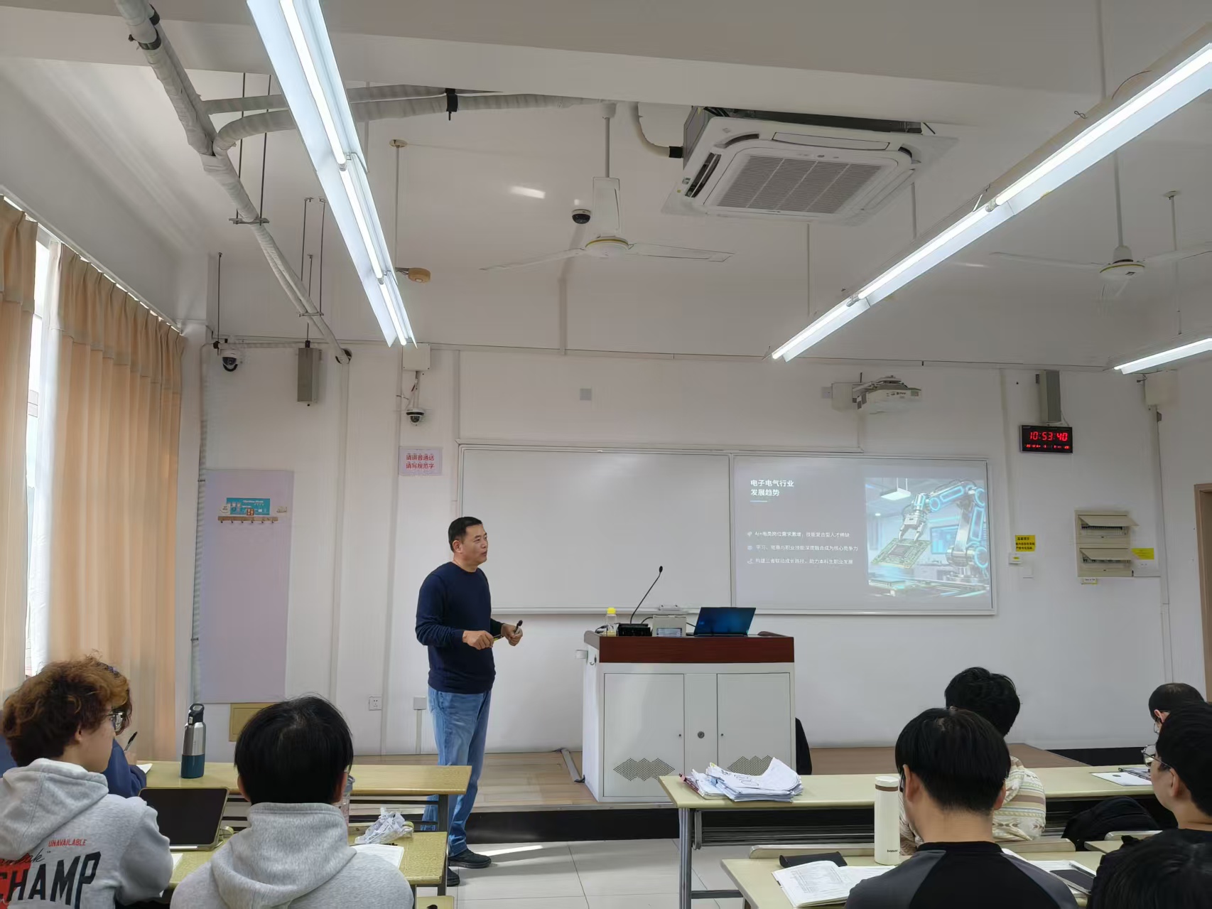 10 月 31 日上午,suncitygroup太阳新城《单片微机应用技术》课堂迎来特殊一课。上海睿联鸿晟智能科技有限公司总裁郑光远受邀莅临课堂,以 “电子电气工程本科生成长路径” 为核心,围绕科研融入、创新赛事参与、职业技能精进等关键方向,结合自身二十余年行业深耕经验,为同学们带来一场兼具理论深度与实践温度的精彩分享,助力suncitygroup太阳集团青年学子明晰成长方向、赋能专业发展。