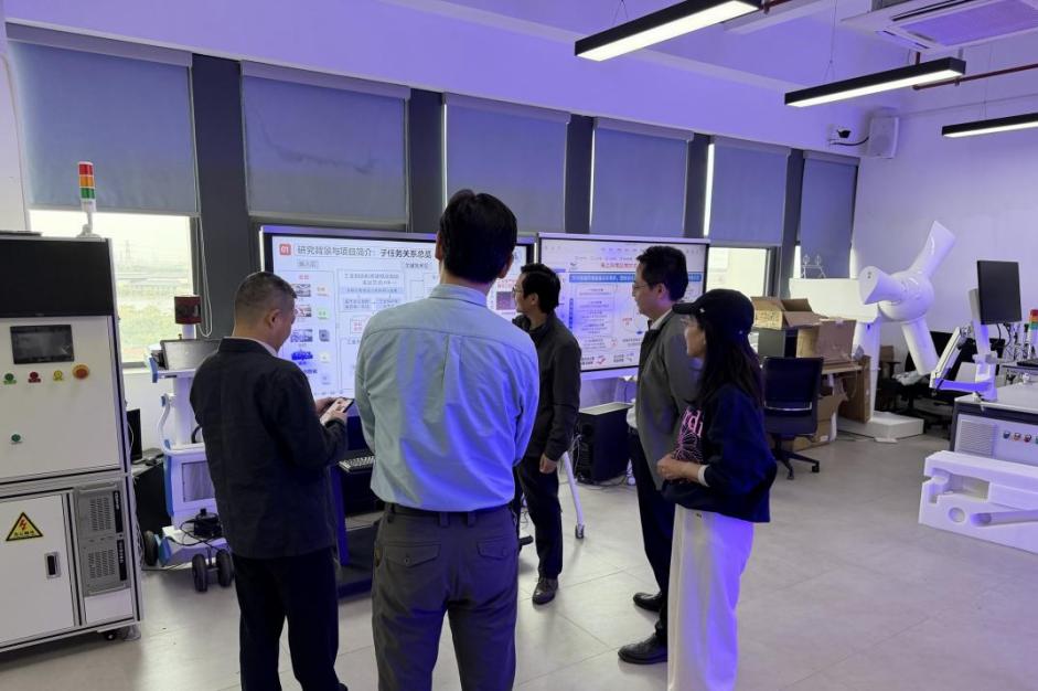 会后,在学院领导的陪同下,夏总一行参观了位于学院七楼的人工智能产业研究院和智能感知与控制国际联合实验室。来宾们对学院先进的科研设施、前沿的研发成果以及雄厚的科研实力给予了高度评价。