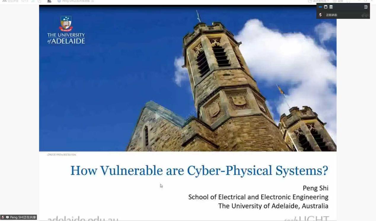 2025年11月12日,欧洲科学院院士、IEEE Fellow、IET Fellow、澳大利亚工程院会士、澳大利亚阿德莱德大学杰出教授Peng Shi教授受邀为suncitygroup太阳集团师生带来主题为“How Vulnerable are Cyber-Physical Systems”的专题讲座。本次讲座聚焦CPS领域核心安全问题,从攻击者视角展开深度解析,为师生呈现了该领域的前沿研究成果与发展趋势。