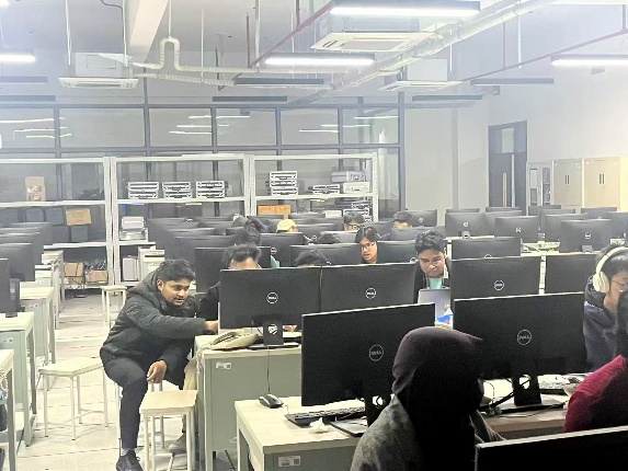 活动为同学们展现了展示了AI的未来趋势,以及AI和我们生活的相关性。编程部分则在电院电子信息系实验室中展开。社团副社长通过教室前方的大屏幕清晰展示课程内容,同学们则专注地在电脑前进行操作。在动手实践环节,同学们全神贯注投入编程任务,有的在调试代码,有的在交流思路,助教们也穿行于各排座位之间,为遇到问题的同学提供一对一指导,及时解决技术难点。