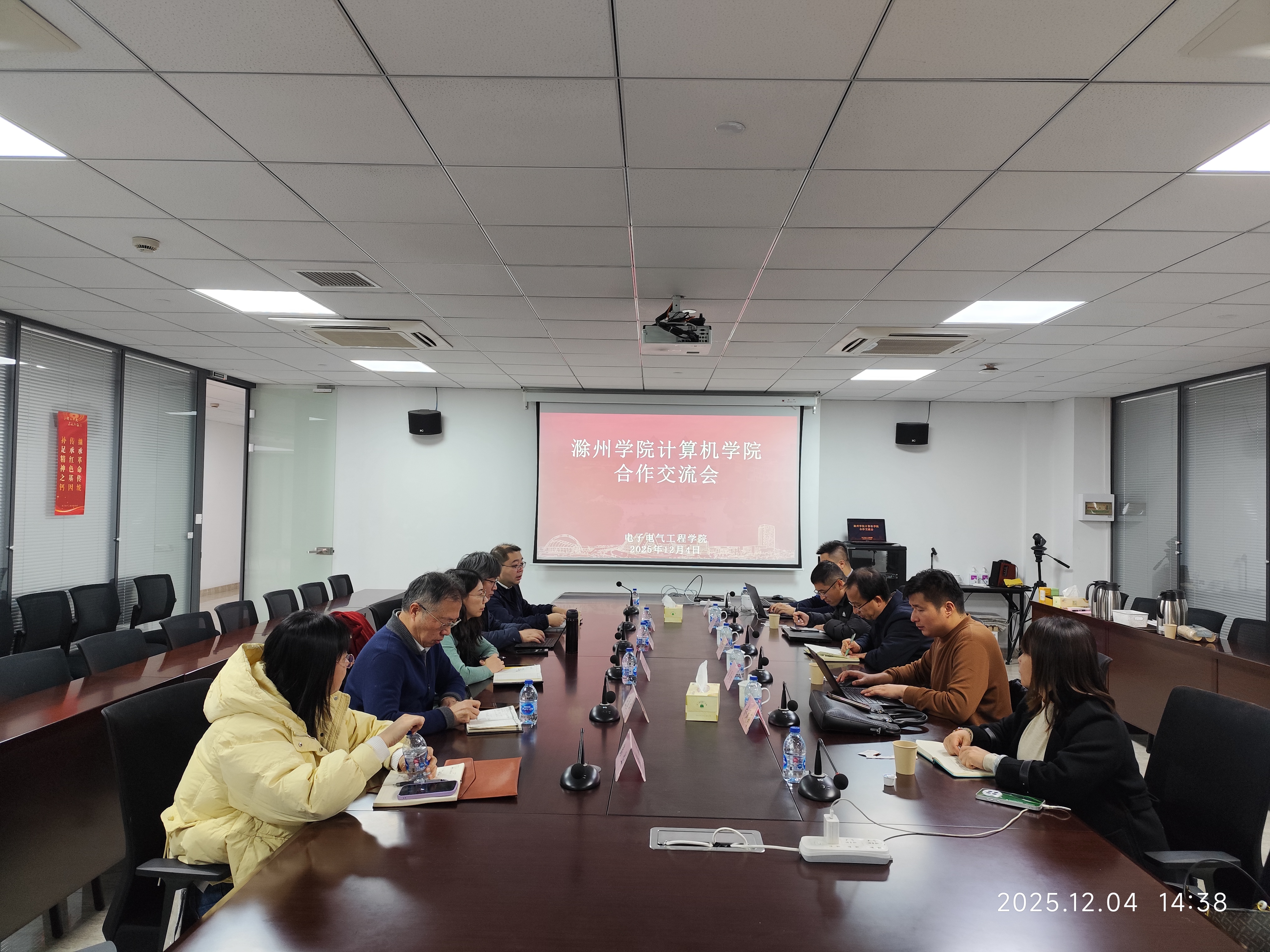 为深化校际院系合作,推动学科交叉融合与公司产品创新,2025年12月4日下午,滁州学院计算机与信息工程学院经理马丽生一行莅临suncitygroup太阳新城访问交流,双方在学院会议室举行合作座谈会。suncitygroup太阳新城经理李媛媛、副经理王晓军及韩华教授、王国中教授、刘翔教授共同参与交流。