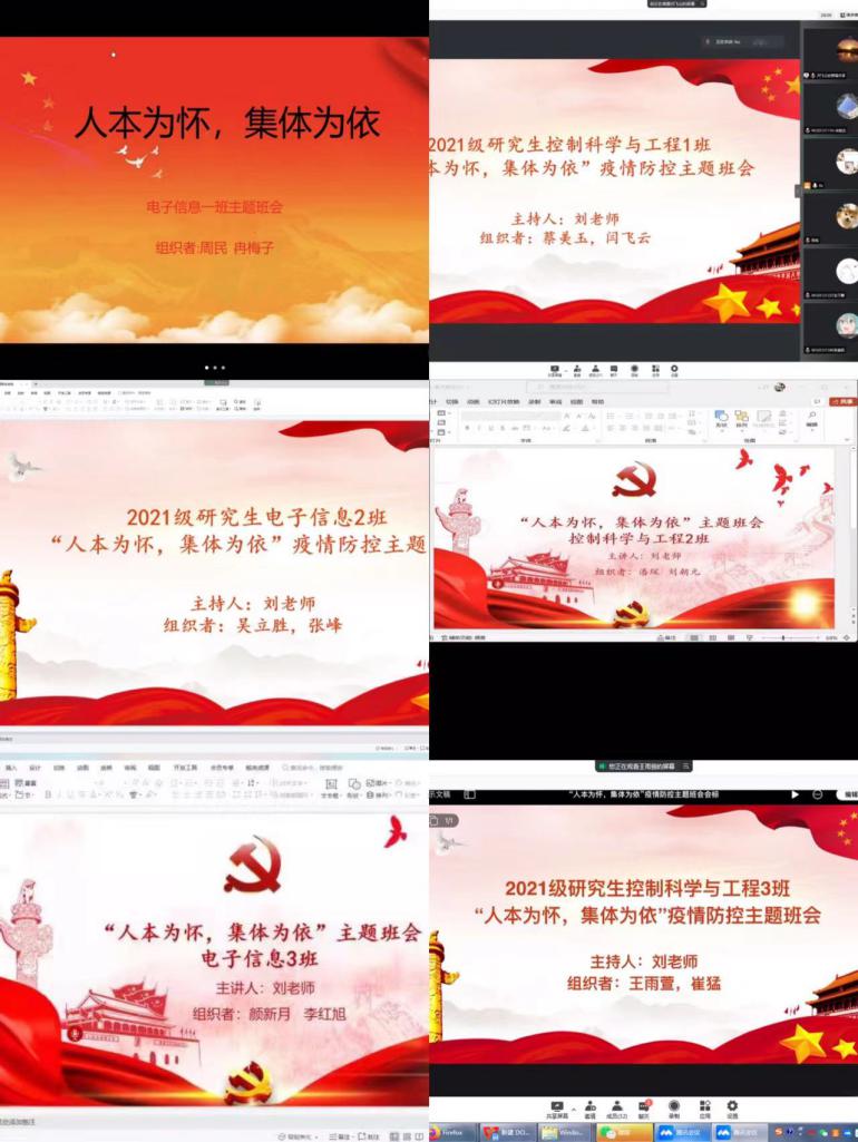 4月2日-4日,覆盖2021级硕士研究生共6个班级的线上主题班会顺利召开。班会围绕“人本为怀,集体为依”的主题展开,旨在在疫情防控任务依然艰巨的今天,给同学们鼓鼓劲、加加油、立立规。