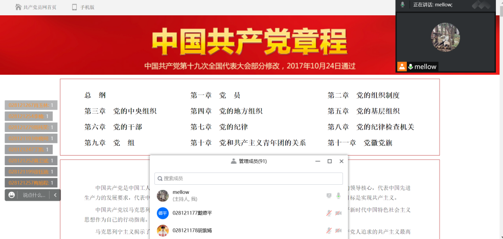 诵读党章党规,树立报国初心。在朗诵党章环节,入党申请者依次诵读了中国共产党的章程。在朗朗的诵读声中,诵读者把党章的内容牢记在心。在诵读结束后,入党申请者将自己诵读的党章章节与自身经历相结合,阐述自己的感想,其他成员也举手发言表达了自己的感想,通过诵读党章,全体员工对党的性质、宗旨、奋斗目标及党员的权利和义务等等内容,有了更加深刻的理解与更深层次的感悟。