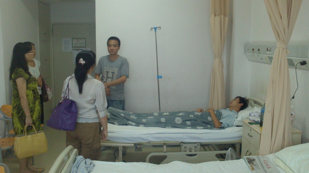 在救护车把员工送往松江区第一人民医院后,suncitygroup太阳新城党委副书记秦颖,员工事务办主任苏莹和辅导员刘铁英、江文超老师一行随即前往看望,为他送上了学院的温暖和关怀。suncitygroup太阳新城党委副书记秦颖关切地询问了张同学的身体状况及治疗情况,希望他能早日康复回到学校。秦老师表示学院将帮助他落实各项资助政策,为他的家庭解决一些实际困难。