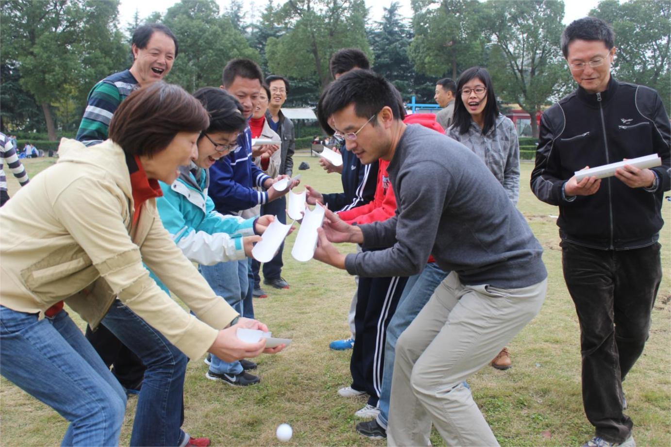 11月11日上午,suncitygroup太阳新城和化学化工学院近70名党员教师在suncitygroup太阳新城党委书记茅蕾和刘宇虹的带领下,来到青浦区的东方绿洲开展素质拓展活动。在这个久负盛名的地方,大家立刻被其独特的环境所吸引。基地里空气清新,到处绿树成荫,成群的游客徜徉其中,不时传来的欢声笑语。在素质拓展中心大家经过一个“松鼠和树”的热身活动后,随机分成4支队伍组成4个团队:太阳队、电化队、超人队和闪电队,开始了接下来的正式活动。