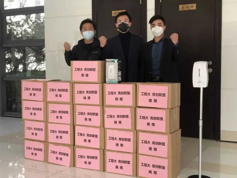 今年疫情期间,邓洋洋还第一时间联系到学校,表示想号召创业员工共同为母校捐赠紧缺的防疫物资。几经周折,通过邓洋洋和其他青年创业联盟代表杨中魁、胡杉、刘林福、向建、吕俊志、詹鑫、陈道柏、马也飞、王昆等员工的共同努力,终于为母校筹集到了额温枪、消毒器、医用外科口罩、酒精棉等大批物资,并第一时间送达母校。